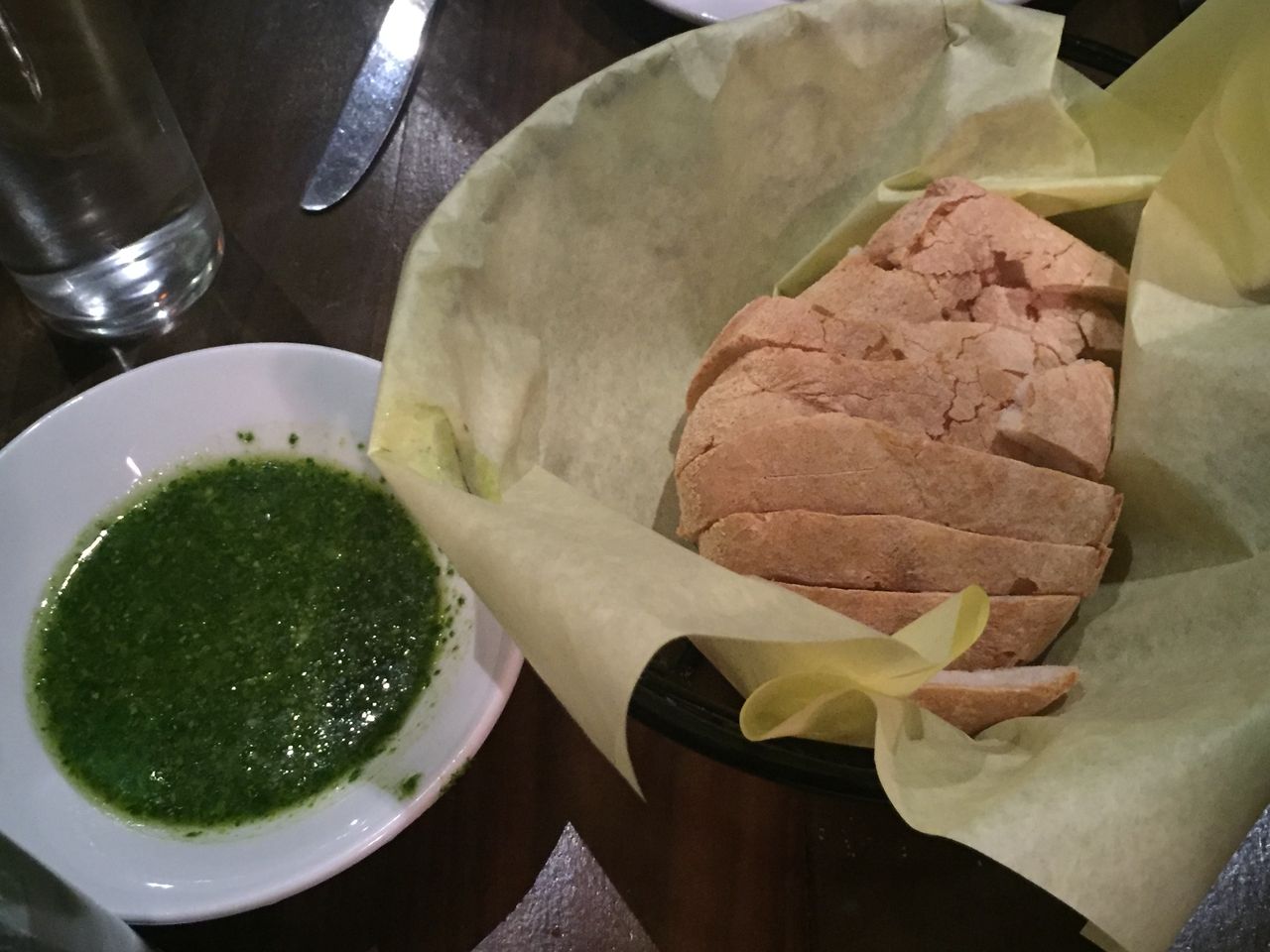普通はオリーブオイルとバルサミコ酢で食べますが、ここはガーリックとバジルのソース。パンも、もっちりしていて美味しかった。